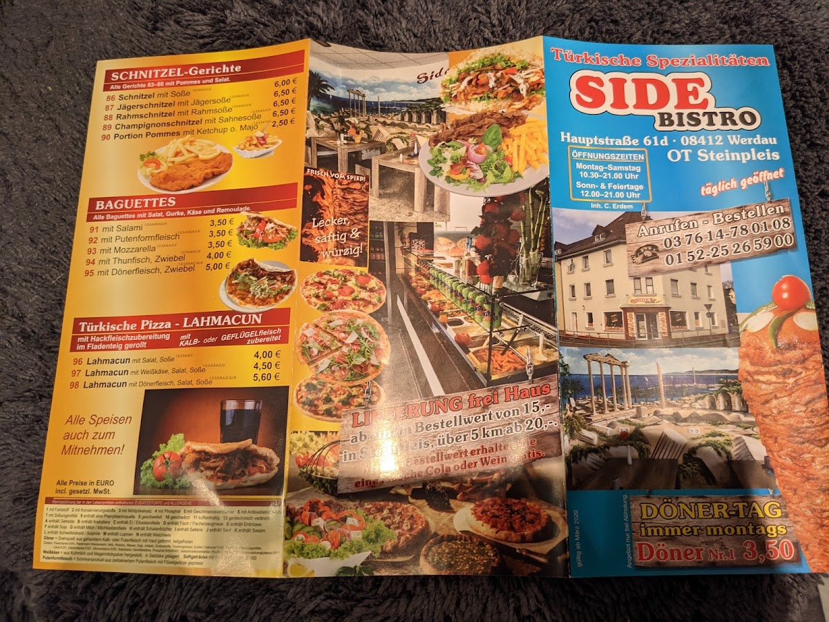 Welcome to Side Bistro, your go-to destination for delicious culinary options in Werdau, located at Hauptstraße 61D. Renowned for its exceptional döner, this bistro has won the hearts of locals and visitors alike. Customer reviews consistently highlight the incredible flavor and quality, noting it's possibly the best döner they've ever tasted.
